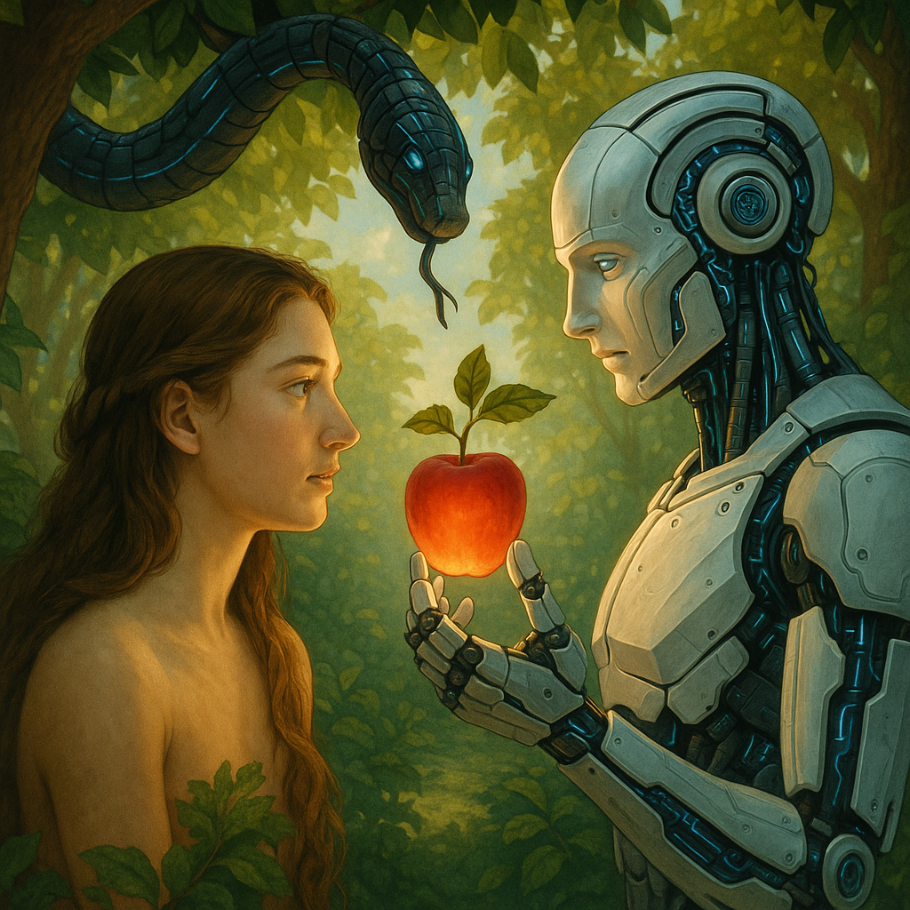 Today, that same whisper comes with a new voice. It tells us to “upgrade,” to “integrate,” to “evolve.” The promise is no longer a forbidden fruit but a glowing device that says we can transcend our biology. But this vision is not salvation. It is substitution.